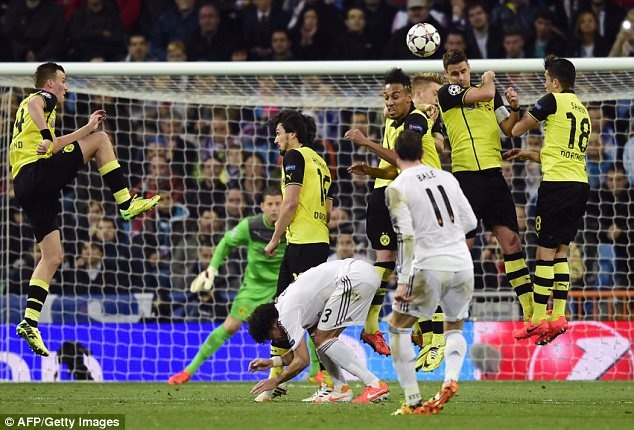 | Cú sút phạt của cầu thủ số 11 khá nguy hiểm nhưng không đánh bại được thủ môn Weidenfeller thêm một lần nữa trong trận lượt đi tứ kết Champions League giữa Real và Dortmund. Tuy nhiên, chiến thắng 3-0 giúp CLB Hoàng gia giành lợi thế rất lớn trước trận lượt về ở Đức. |