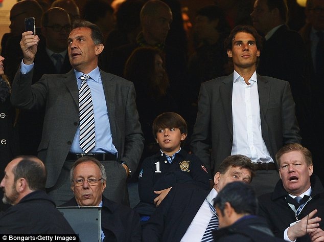 | Trên khán đài sân Bernabeu, tay vợt Rafael Nadal đến xem các ngôi sao của Real và Dortmund thi đấu. |