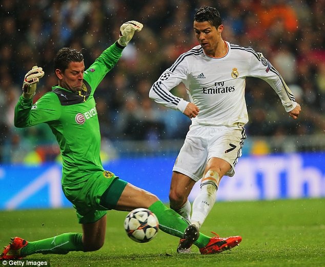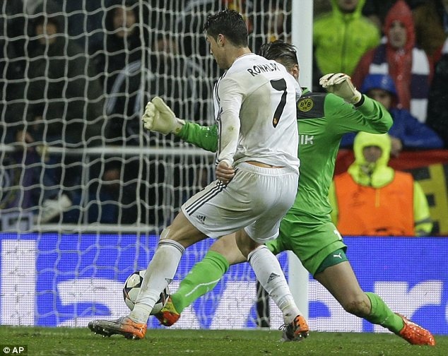 | Với pha làm tung lưới thủ môn Weidenfeller, ngôi sao người Bồ Đào Nha san bằng kỷ lục thành tích ghi bàn trong một mùa giải ở Champions League của Messi. |
