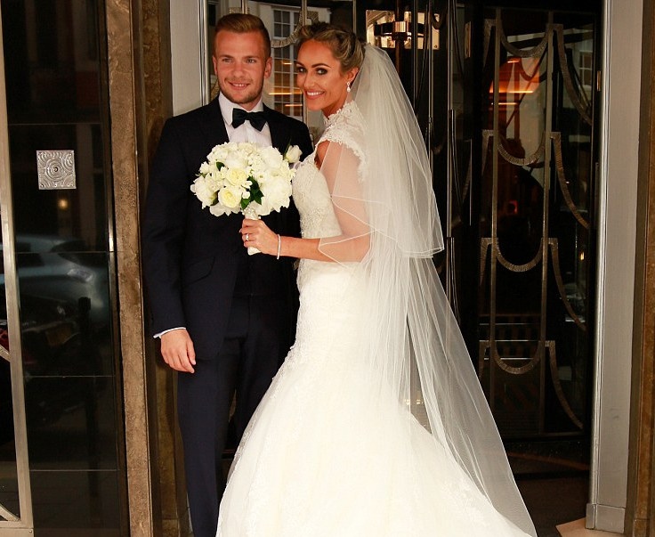 | Ngày 16/6, cựu tiền vệ M.U, Tom Cleverley tổ chức đám cưới cùng bạn gái Georgina Dorsett tại London. |