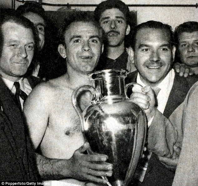 | Huyền thoại Di Stefano từng đem lại cho Real Madrid 5 chức vô địch C1 (tiền thân của Champions League) liên tiếp từ mùa 1955/56 đến 1959/60. |