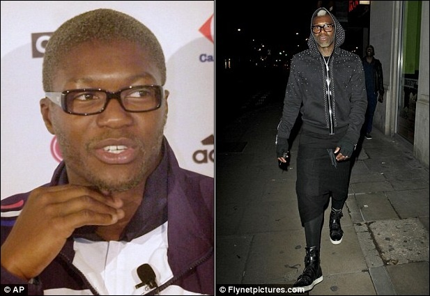 | Cựu tiền đạo Liverpool, Sunderland và QPR Djibril Cisse trông siêu dị trong bộ quần áo cùng cặp kính chẳng giống ai. |