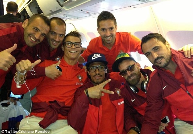 | Trong lần trở về làm nghĩa vụ quốc gia, Ronaldo cũng khiến đồng đội ở tuyển Bồ Đào Nha thắc mắc với cặp kính anh đeo. |