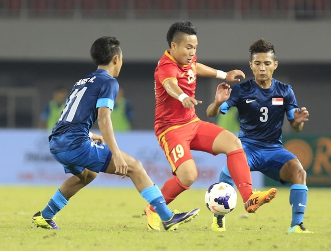 | Phi Sơn thi đấu trong màu áo đội tuyển U23 Việt Nam tại SEA Games 27. Ảnh Lâm Thỏa. |