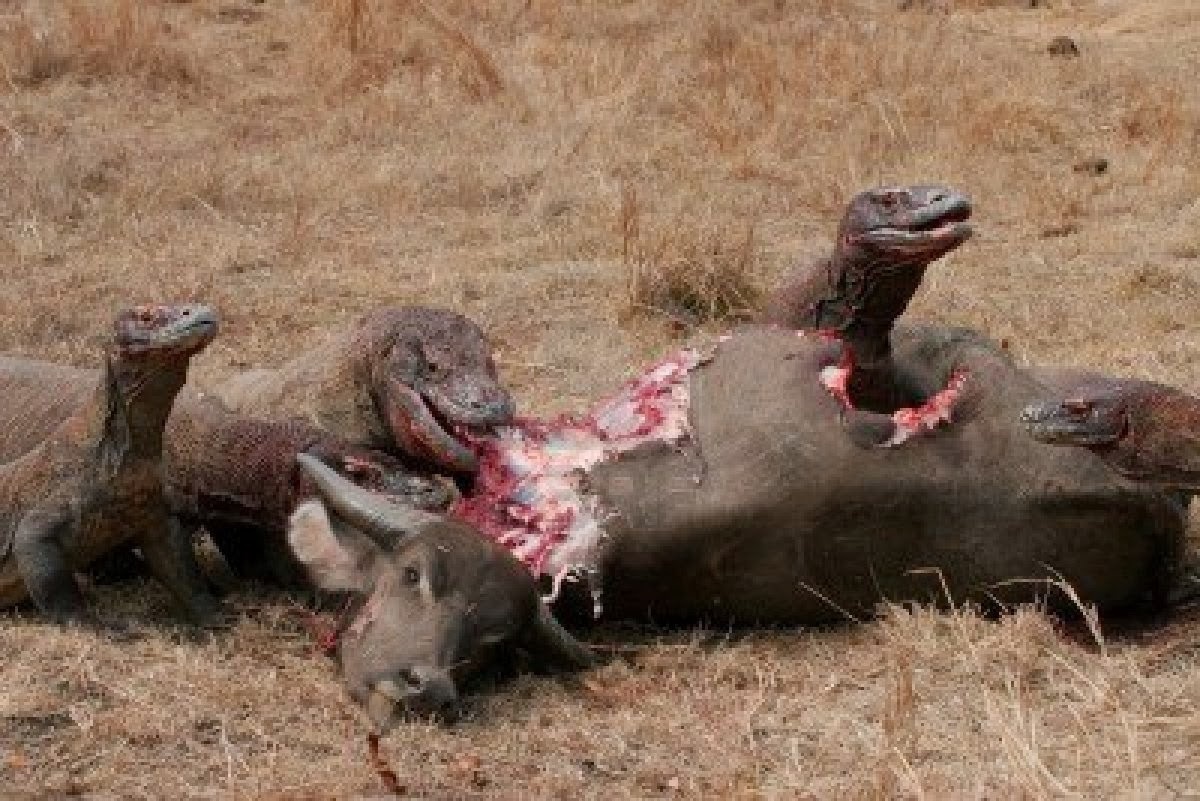 Rồng Komodo là loài động vật ăn thịt. Chúng ăn côn trùng và cả những động vật lớn như dê, lợn và trâu rừng. Khi đói, chúng ăn thịt cả đồng loại. Mối đe dọa lớn nhất của rồng Komodo chính là những cá thể cùng loài có kích thước lớn hơn. Ảnh: Burrad-Lucas.com |