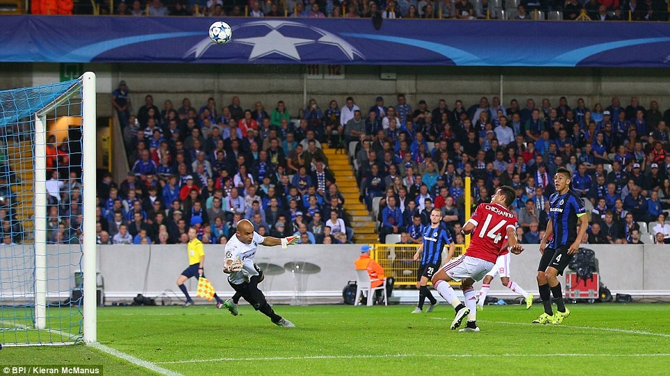 Tỷ số sẽ là 5-0 cho M.U nếu Chicharito không bỏ lỡ quả penalty phút 80. Duarte để bóng chạm tay khiến Club Brugge bị thổi phạt đền. Nhưng trên chấm 11 m, tiền đạo người Mexico lại dứt điểm chệch cột.