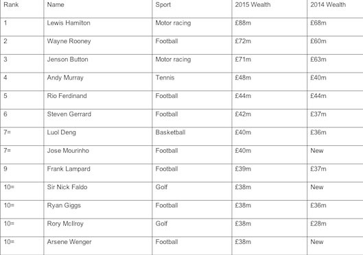 Danh sách những người giàu nhất ở Anh trong lĩnh vực thể thao.