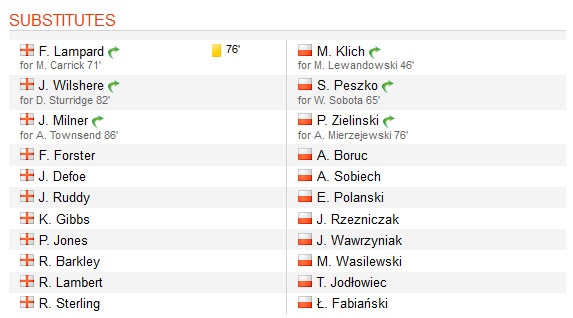 | Đội hình ra sân của ĐT Anh và Ba Lan |