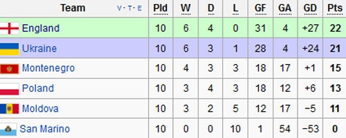 | ĐT Anh giành vé trực tiếp dự World Cup 2014. Đội xếp thứ 2 Ukraine đá play-off. |