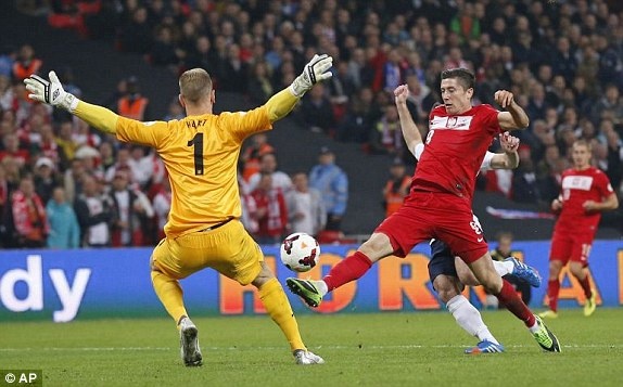 Tuy nhiên, Tam sư suýt chút nữa phải trả giá cho sự chủ quan khi hàng thủ để Lewandowski thoát xuống đối mặt với Joe Hart ở phút 60. Đáng tiếc cho ĐT Ba Lan khi tiền đạo từng có hiệu suất ghi bàn khá cao ở Champions League mùa trước lại dứt điểm không chính xác.