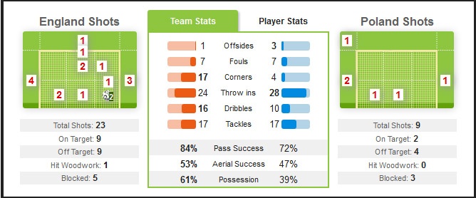 | ĐT Anh đánh bại ĐT Ba Lan với tỷ số 2-0. |