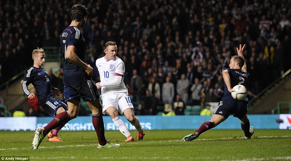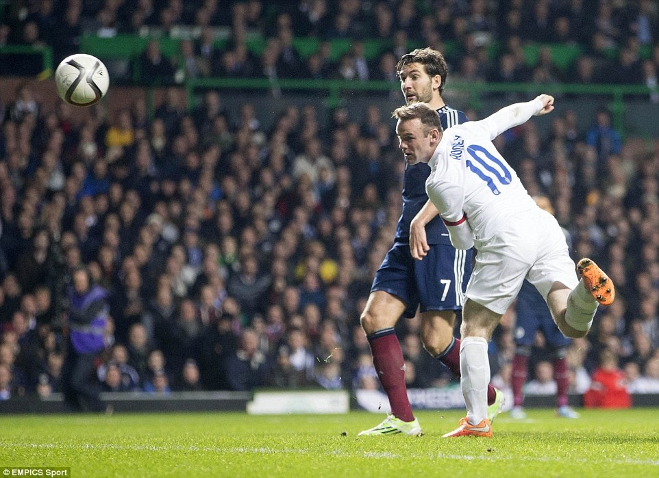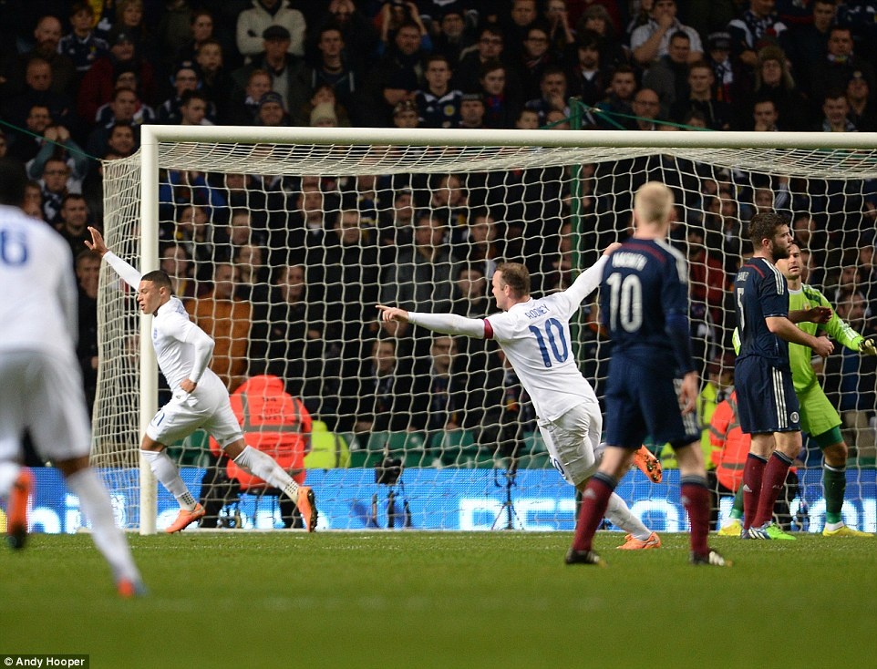 | Với phong độ xuất sắc của Rooney (ghi bàn ở 3 trận liên tiếp gần nhất), tuyển Anh dễ dàng áp đặt thế trận dù phải thi đấu trên sân của Scotland. |