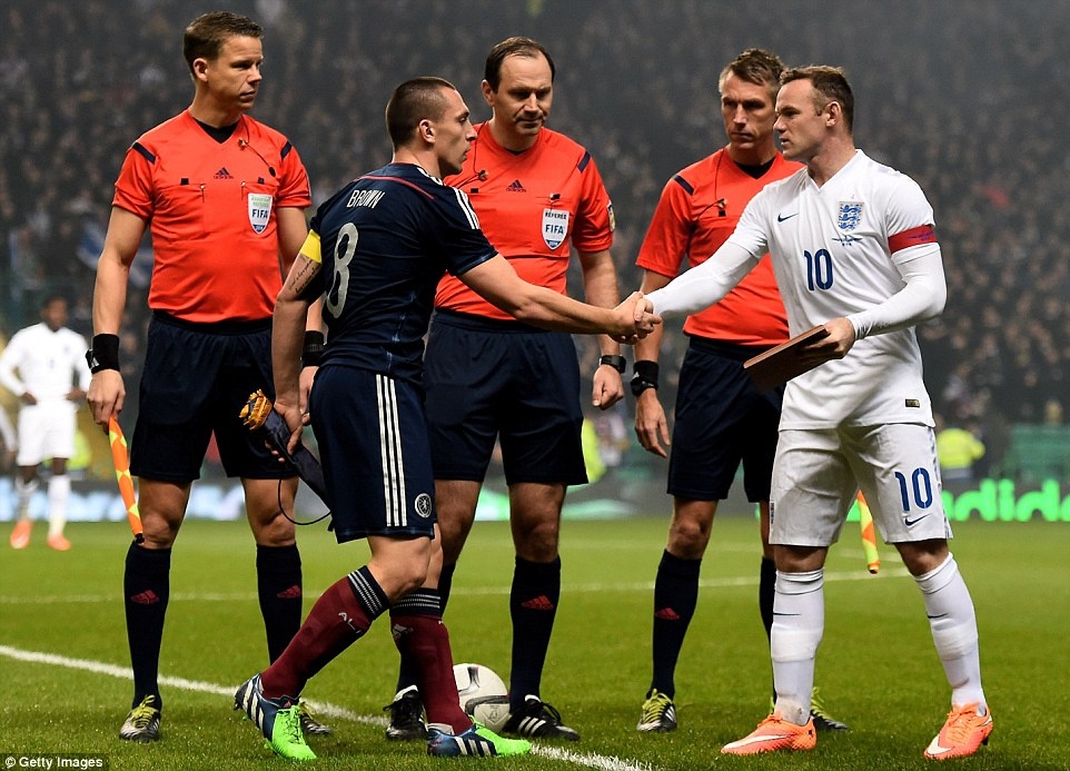 Đội hình thi đấu: Scotland: Marshall (Gordon 46’), Whittaker, R Martin, Hanley (May 66’), Robertson, Maloney (Russell 81’), Mulgrew, Brown (D.Fletcher 46’), Anya (Bannan 61’), C.Martin (Morrison 46’), Naismith. Anh: Forster, Clyne, Cahill (Jagielka 46’), Smalling, Shaw (Gibbs 66’), Oxlade-Chamberlain (Lambert 80’), Milner, Wilshere (Barkley 87’), Downing (Lallana 46’), Rooney, Welbeck (Sterling 46’). |
