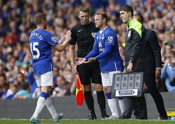 | Phút 73, Rooney vào thay chính đồng đội cũ Tom Cleverley, tiền vệ vừa gia nhập Everton theo dạng chuyển nhượng tự do sau khi đáo hạn hợp đồng với M.U.