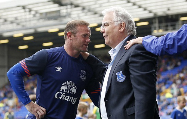 | Chân sút 29 tuổi chào hỏi chủ tịch Everton, Bill Kenwright.