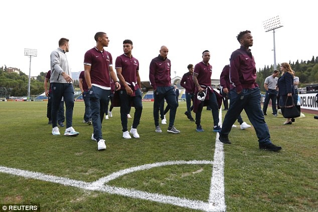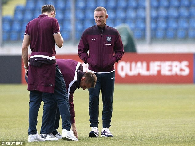| Theo thông lệ, Wayne Rooney và đồng đội làm quen với sân Olimpico di Serravalle (Serravalle) trước khi trận đấu diễn ra. |