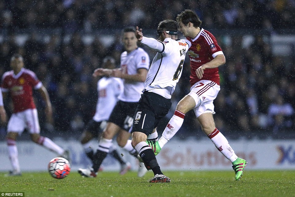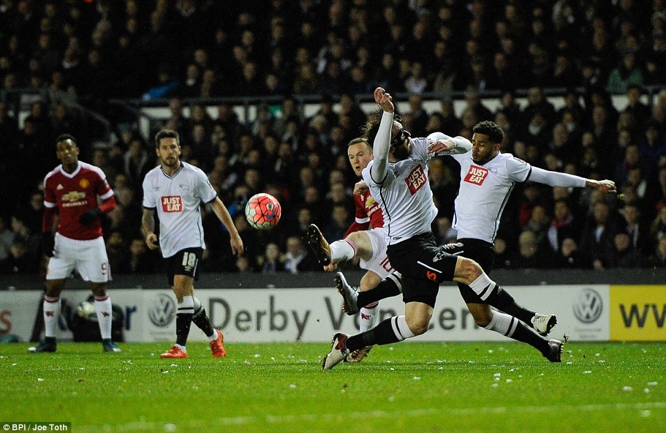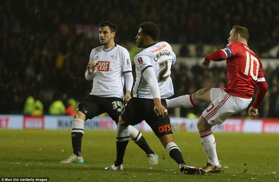 Phút 16, Wayne Rooney ghi bàn giúp MU dẫn trước Derby County - đội bóng đang chơi ở Championship, tương đương hạng hai tại Anh. |