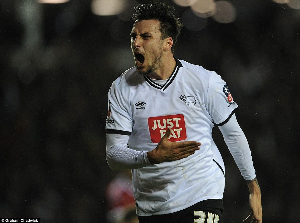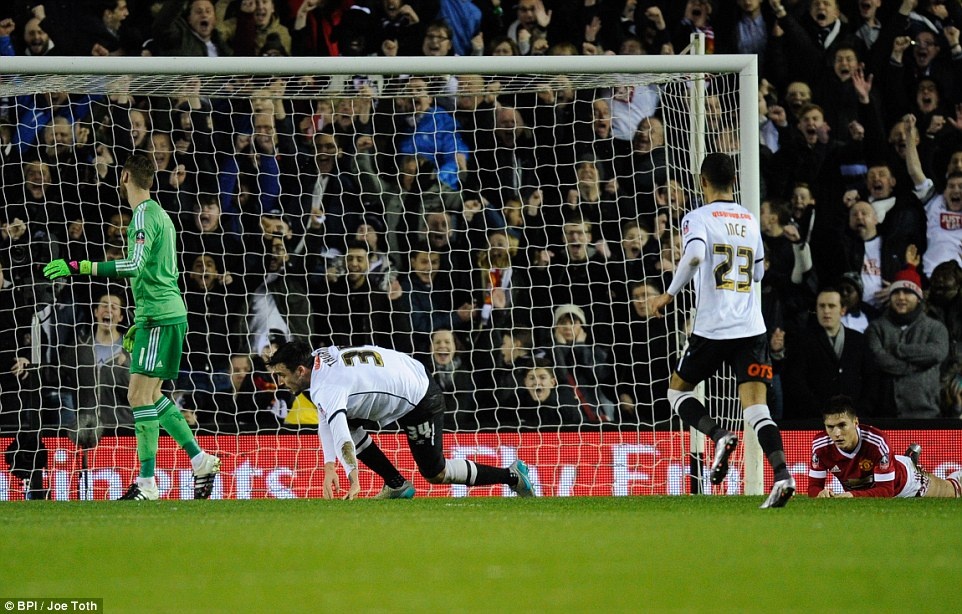 Phút 37, George Thorne băng xuống đón đường chuyền của đồng đội, sau đó dứt điểm kỹ thuật đánh bại thủ môn De Gea gỡ hòa 1-1 cho Derby County. |