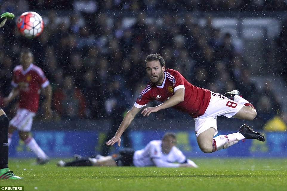 Hiệp 2 của trận đấu diễn ra sôi nổi với những pha tấn công tốc độ và đẹp mắt. Tiền vệ Juan Mata đánh đầu đưa bóng đi chệch khung thành Derby County. |