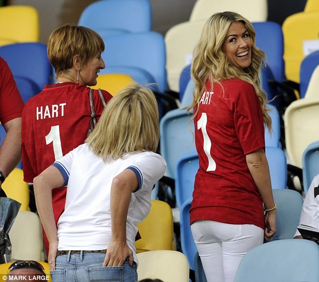 | Kimberley Crew (phải) - vợ sắp cưới của thủ môn Joe Hart là cổ động viên cuồng nhiệt của chồng tại EURO 2012. |