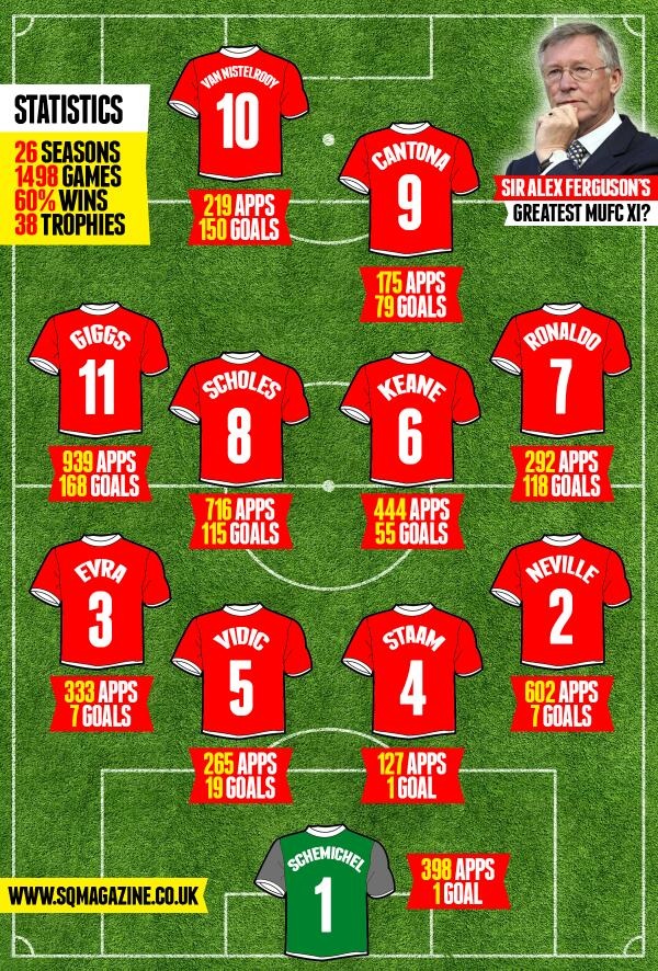 Đội hình xuất sắc M.U theo lựa chọn của Sir Alex Ferguson.