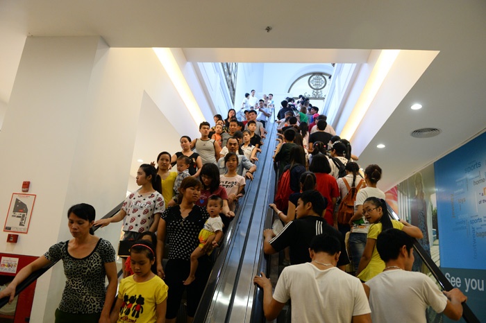 Bên trong khu mua sắm, cầu thang cuốn luôn chật kín.