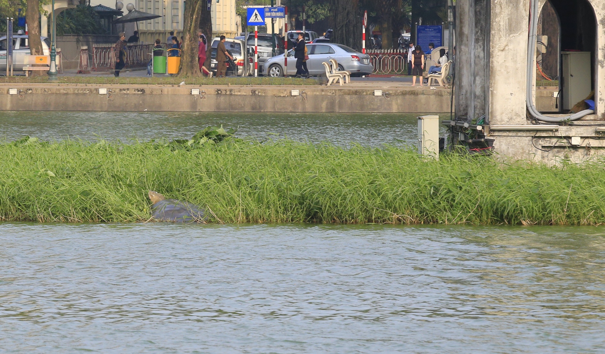 | Phó giáo sư Hà Đình Đức cũng có mặt, ông không đưa ra bình luận gì mà chỉ cho biết đây là lần thứ 4 rùa nổi lên trong tháng này. "Hồi tháng hai, rùa nổi 4 lần, tháng một 8 lần", nhà nghiên cứu rùa nói. |