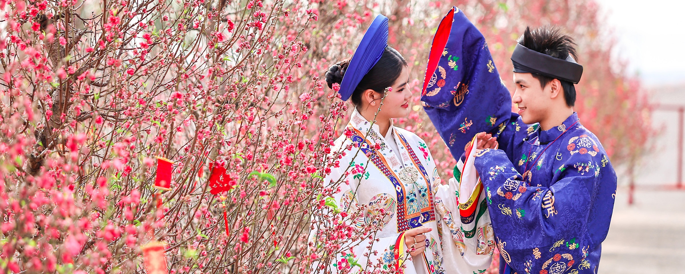 | Bên cạnh tà áo dài quen thuộc, nhiều bạn trẻ còn chọn khoác lên mình cổ phục Nhật Bình khi dạo bước tại Lễ hội Xuân Cần Giờ. Giữa nền trời xanh và không gian rực rỡ sắc xuân, từng sắc áo truyền thống góp phần tôn lên vẻ đẹp giao thoa giữa Tết cổ truyền và hơi thở hiện đại. “Mỗi tiểu cảnh, cung đường xuân đều trở thành phông nền đắt giá cho bộ ảnh Tết. Khoác lên mình cổ phục Việt, dạo bước giữa bạt ngàn sắc hoa, tôi có cảm giác như đang check-in tại ‘studio’ ngoài trời ngập tràn hoa xuân”, Thục Anh (25 tuổi, TP.HCM) hào hứng. |
