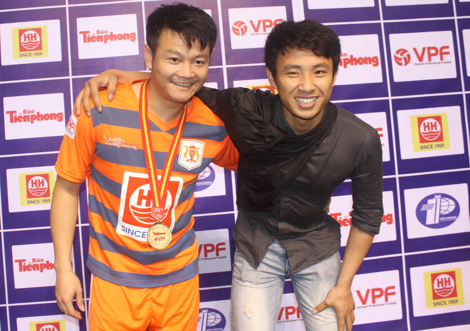 | Running Man Vũ Xuân Tiến hào hứng xin chụp ảnh cùng Văn Quyến. |