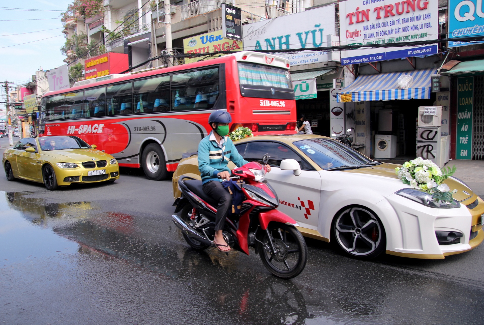| Đoàn rước dâu đi qua đại lộ Phạm Văn Đồng, con đường nội đô đẹp nhất TP HCM. |