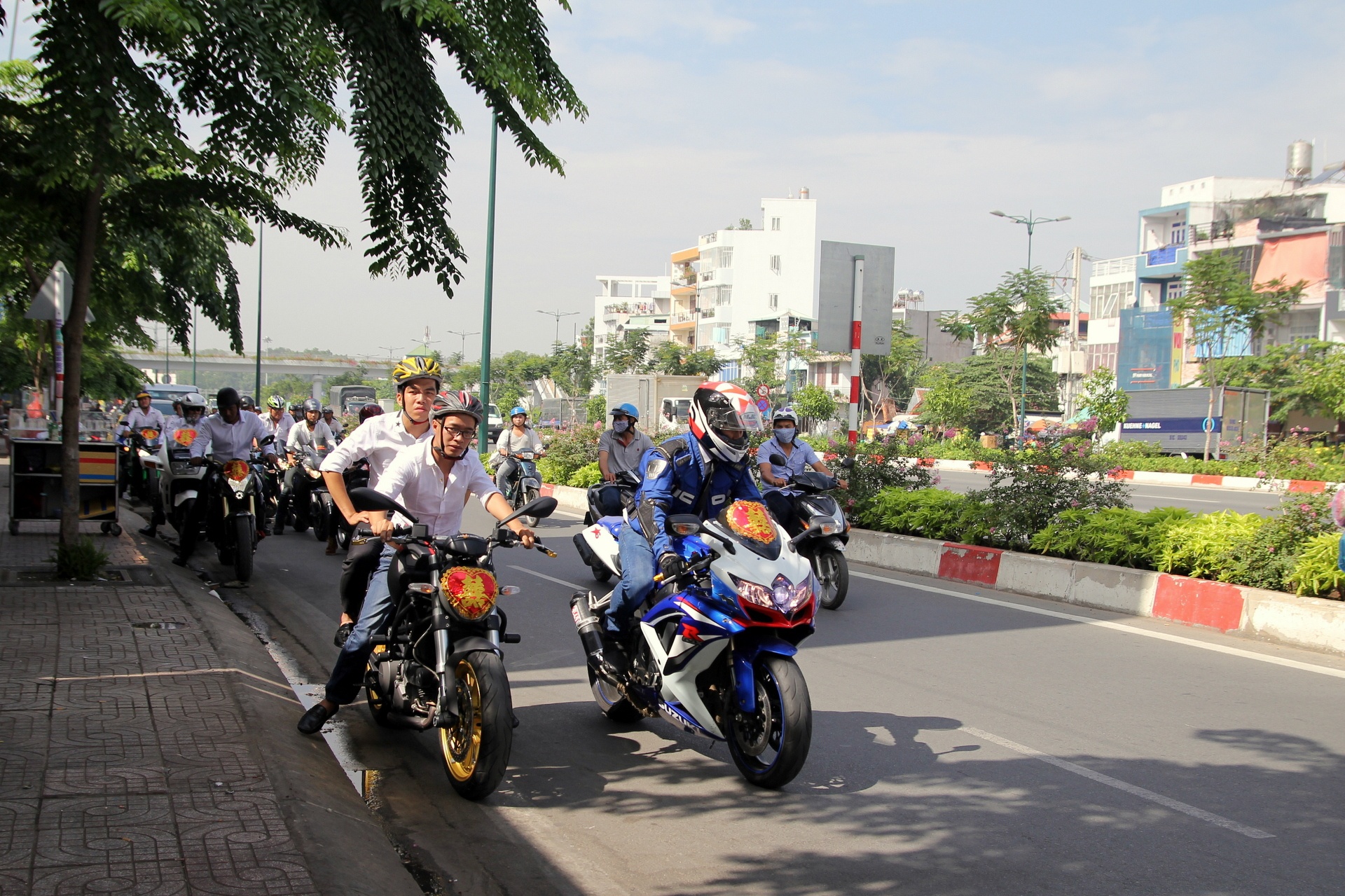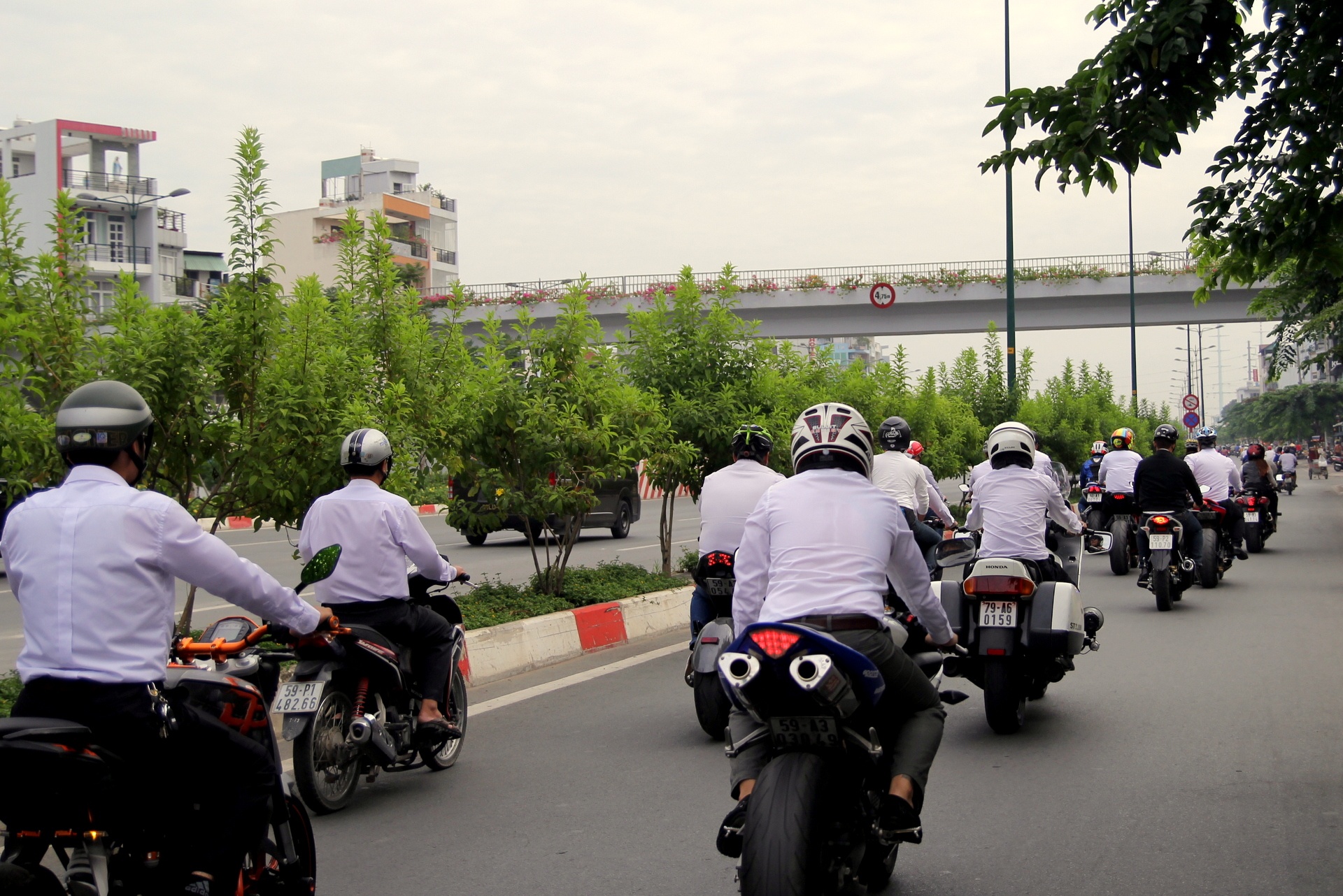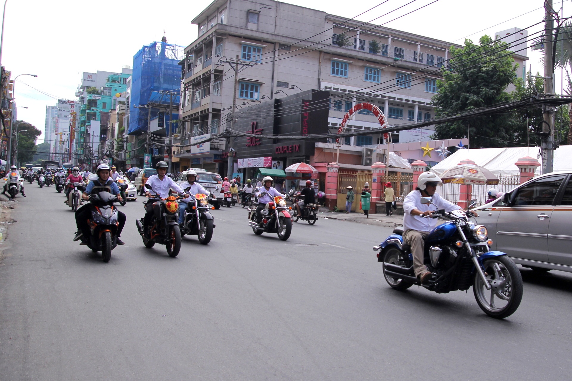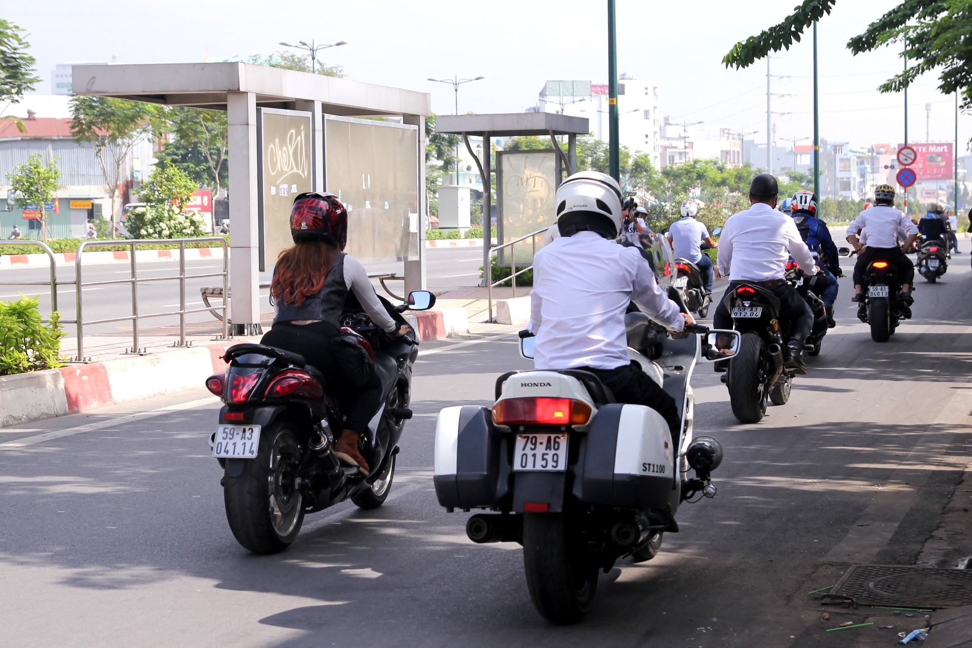 | Những mẫu xe dòng cruiser chạy trước dẫn đường. Sáng thứ 7 tại TP HCM, đường phố khá thông thoáng. |