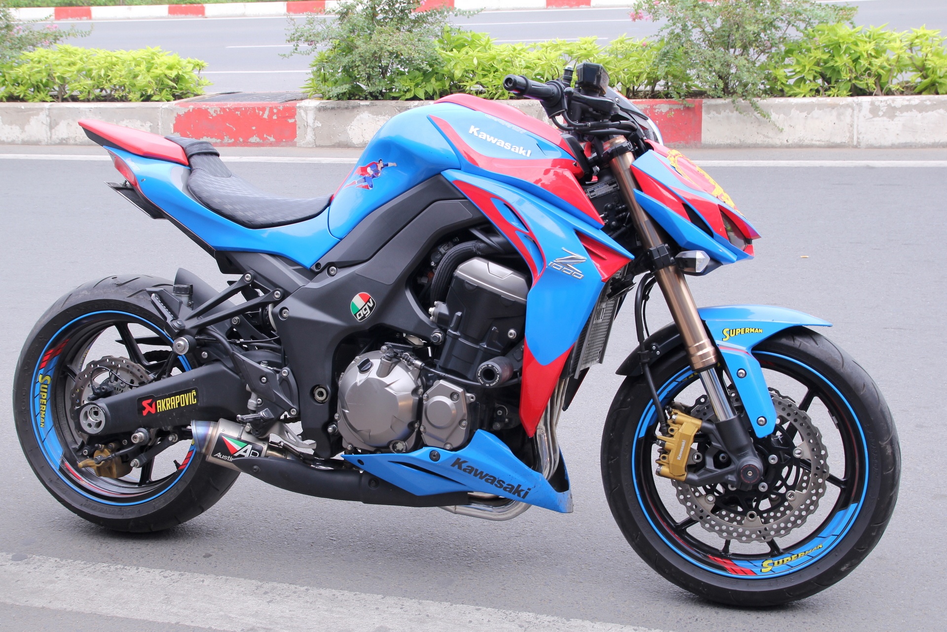 | Kawasaki Z1000 độ phong cách siêu nhân với hai tông màu xanh-đỏ chủ đạo. |