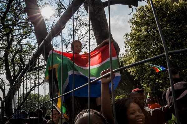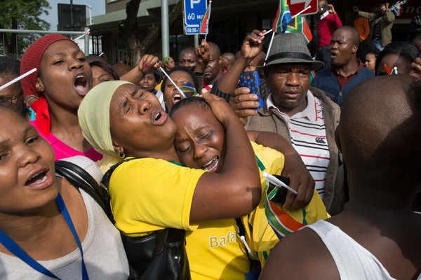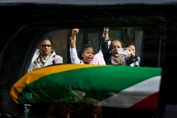 Cầm trên tay lá quốc kỳ, người dân Nam Phi tiễn đưa người anh hùng dân tộc theo cách độc đáo nhưng chan chứa tình cảm. Ảnh: NY Times. |