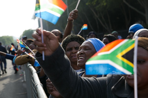 Người dân Nam Phi hò reo khi xe chở linh cữu cố tổng thống Mandela tiến vào thủ đô Pretoria sáng nay, thứ 4 ngày 11/12/2013. Ảnh: NY Times. |