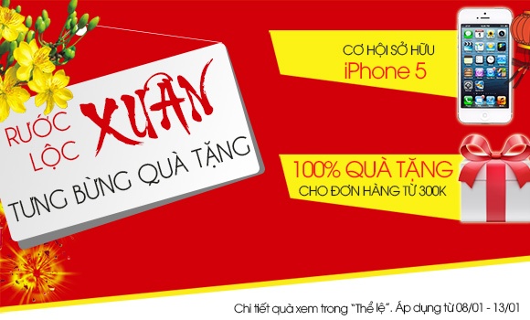 Với chương trình “Rước lộc xuân - Tưng bừng quà tặng”, khách hàng không chỉ có cơ hội mua các sản phẩm với giá ưu đãi sốc lên đến 50% và nhận ngay 100% những món quà xinh xắn đáng yêu khi mua đơn hàng từ 300.000đ.