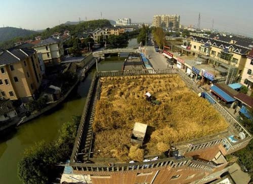 Trung Quốc đã biến nóc tòa nhà 4 tầng của mình thành một ruộng lúa ngoạn mục. Ruộng lúa này cách mặt đất 40 feet (khoảng 15 m) và có diện tích khoảng 120 m2.