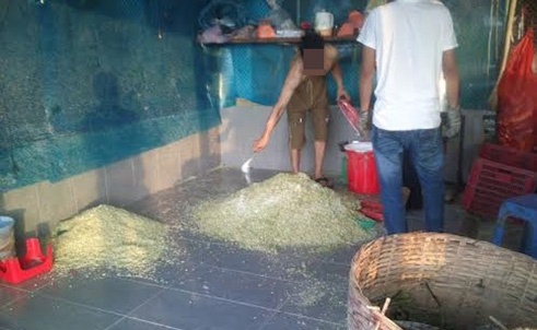 Người mua về đổ thẳng vào nồi nấu, đâu biết sả bằm chế biến trong điều kiện mất vệ sinh thế này. |