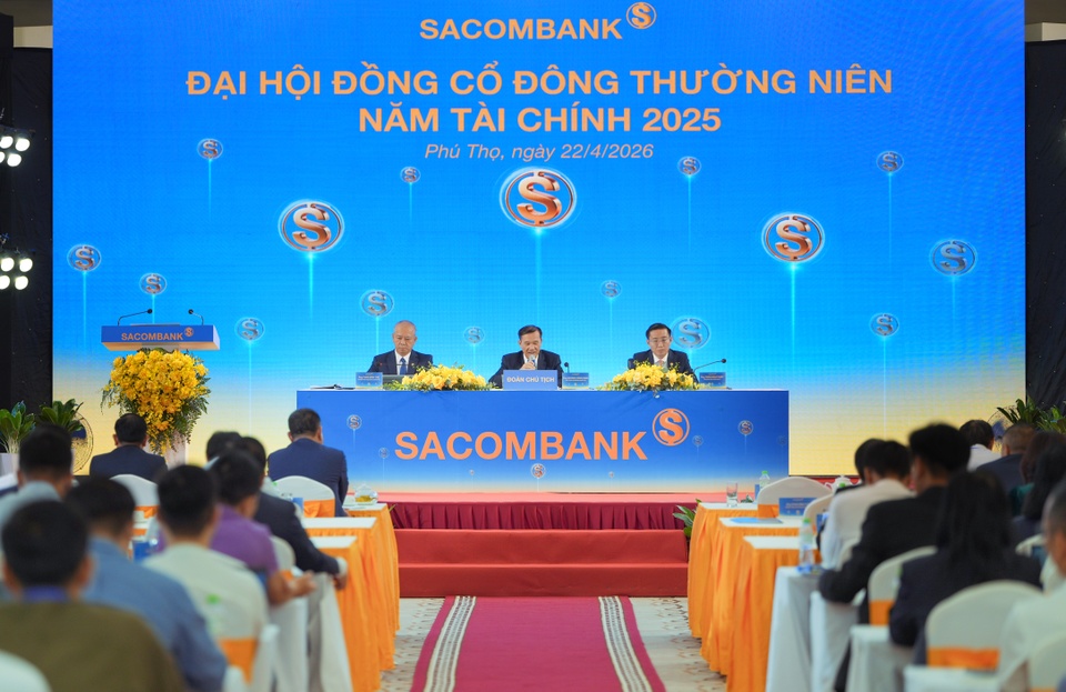 Sáng 22/4, Ngân hàng TMCP Sài Gòn Thương Tín - Sacombank (HoSE: STB) đã tổ chức Đại hội đồng cổ đông (ĐHĐCĐ) thường niên năm tài chính 2025 tại Việt Trì, Phú Thọ. Đây là năm đầu tiên nhà băng này tổ chức họp cổ đông ở một tỉnh miền Bắc, thay vì tại TP.HCM như các năm trước.