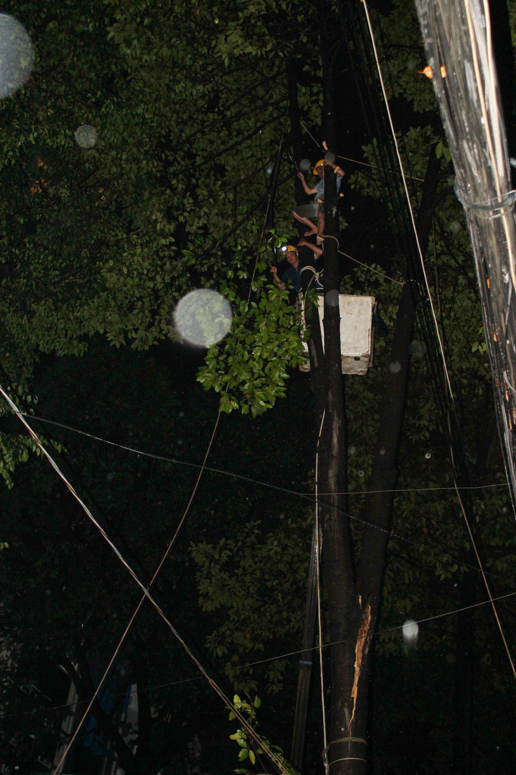 | Điện lập tức được cúp, các phương tiện giao thông không được qua lại đoạn đường gần 200m này để đảm bảo an toàn. |