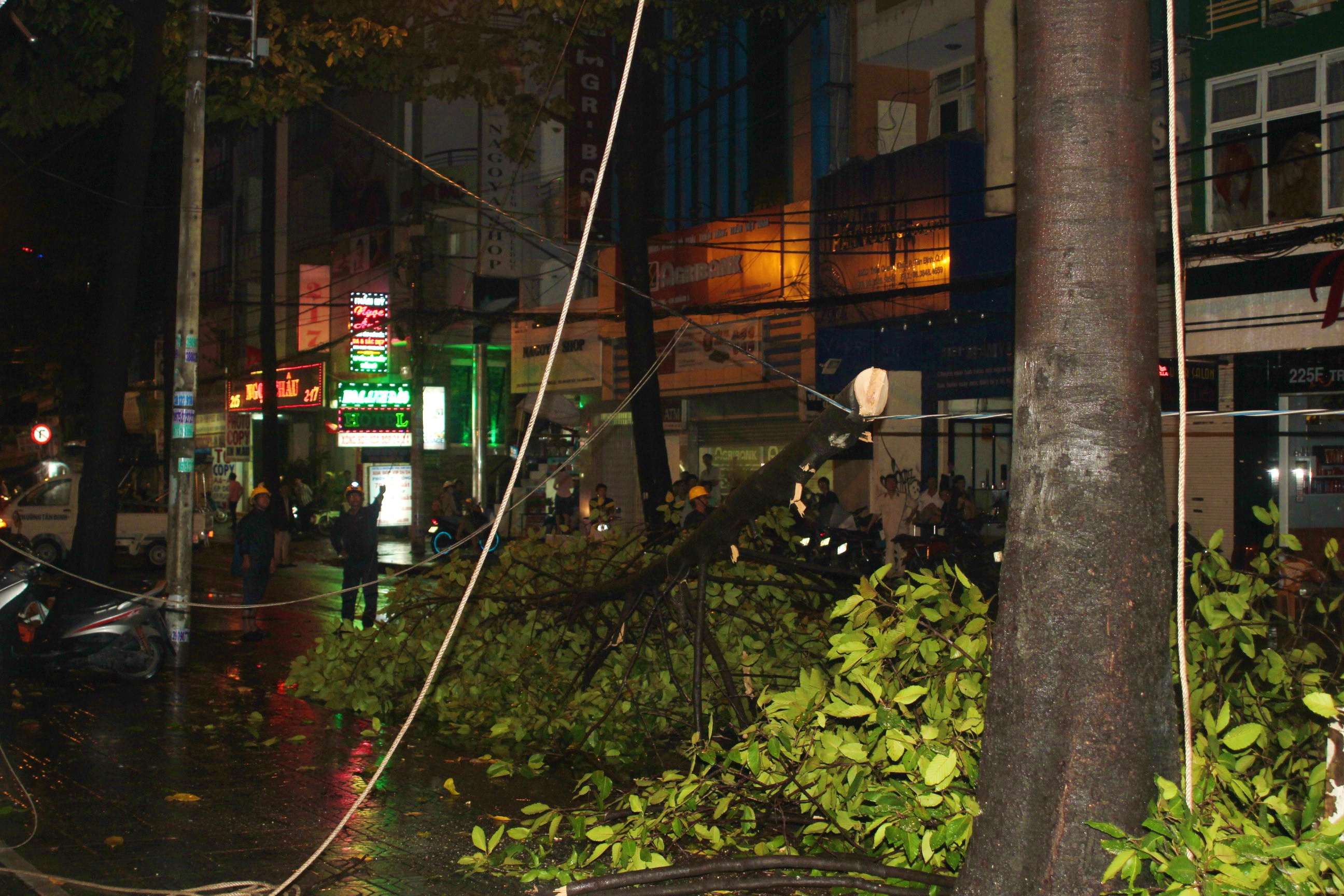 | Cây xanh bị tước đôi vào khoảng 18h chiều 6/9 nằm trước số nhà 190A đường Trần Quang Khải, P.Tân Định, Q.1 |