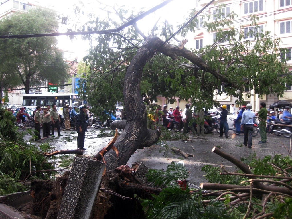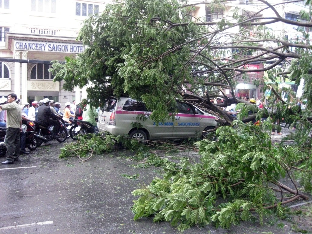Anh Lê Ngọc Thắng (SN 1986, ngụ Q.12), tài xế xe taxi của gặp nạn cho biết, thời điểm trên anh chở hai khách nước ngoài lưu thông trên đường Nguyễn Thị Minh Khai hướng từ Q.1 đi Q.Bình Thạnh. Khi lưu thông đến khu vực trên thì bị một cây xanh ngã đè trúng nóc taxi khiến hai hành khách nước ngoài một phen hoảng loạn.