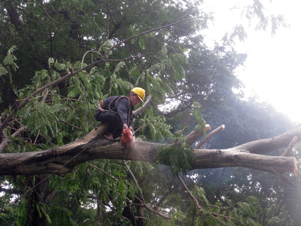 | Nhân viên công ty cây xanh thành phố khắc phục sự cố. |
