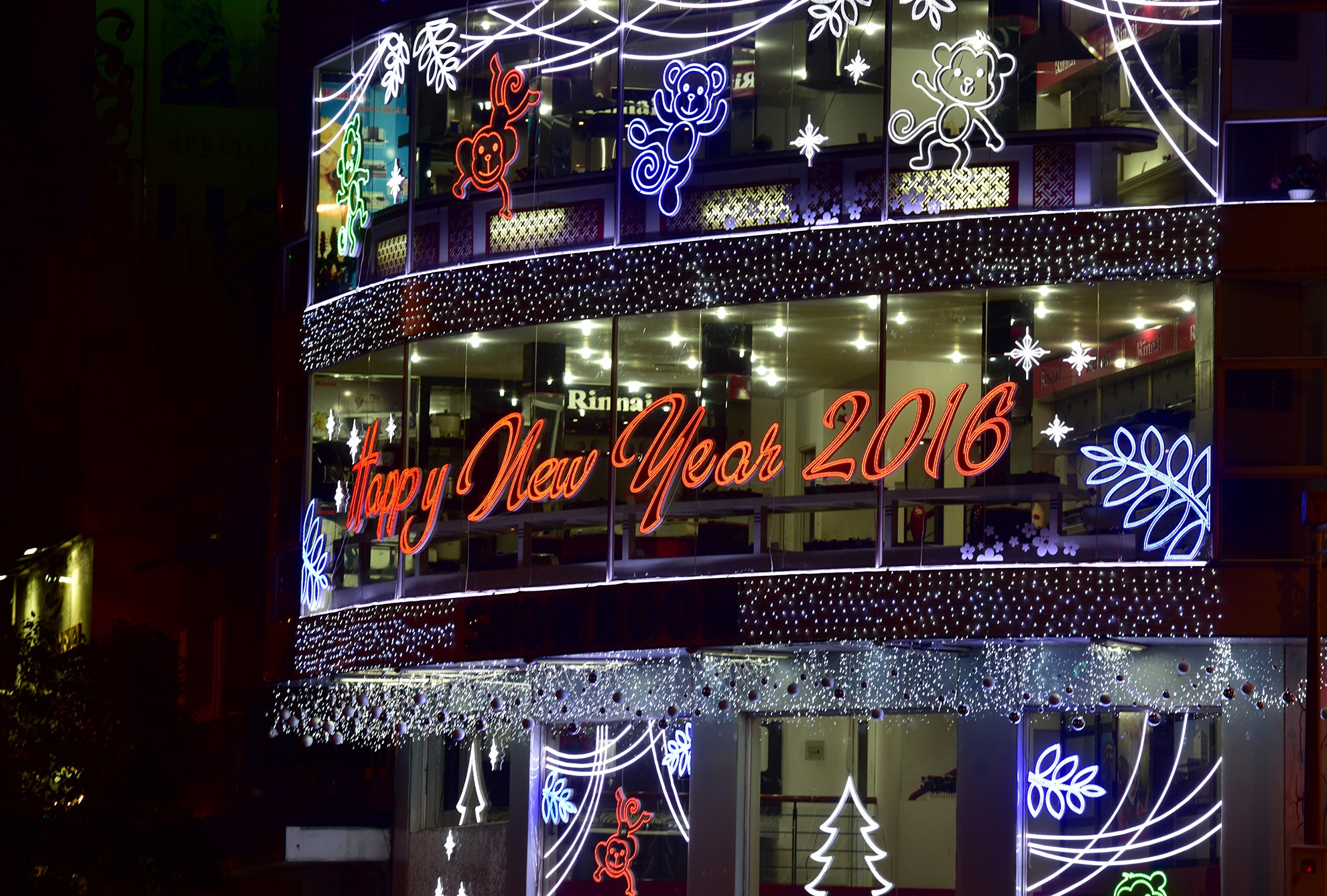 | Biểu tượng 2016 được chăng và dán khắp các nhà hàng, khách sạn, trung tâm thương mại và khu vui chơi giải trí. |