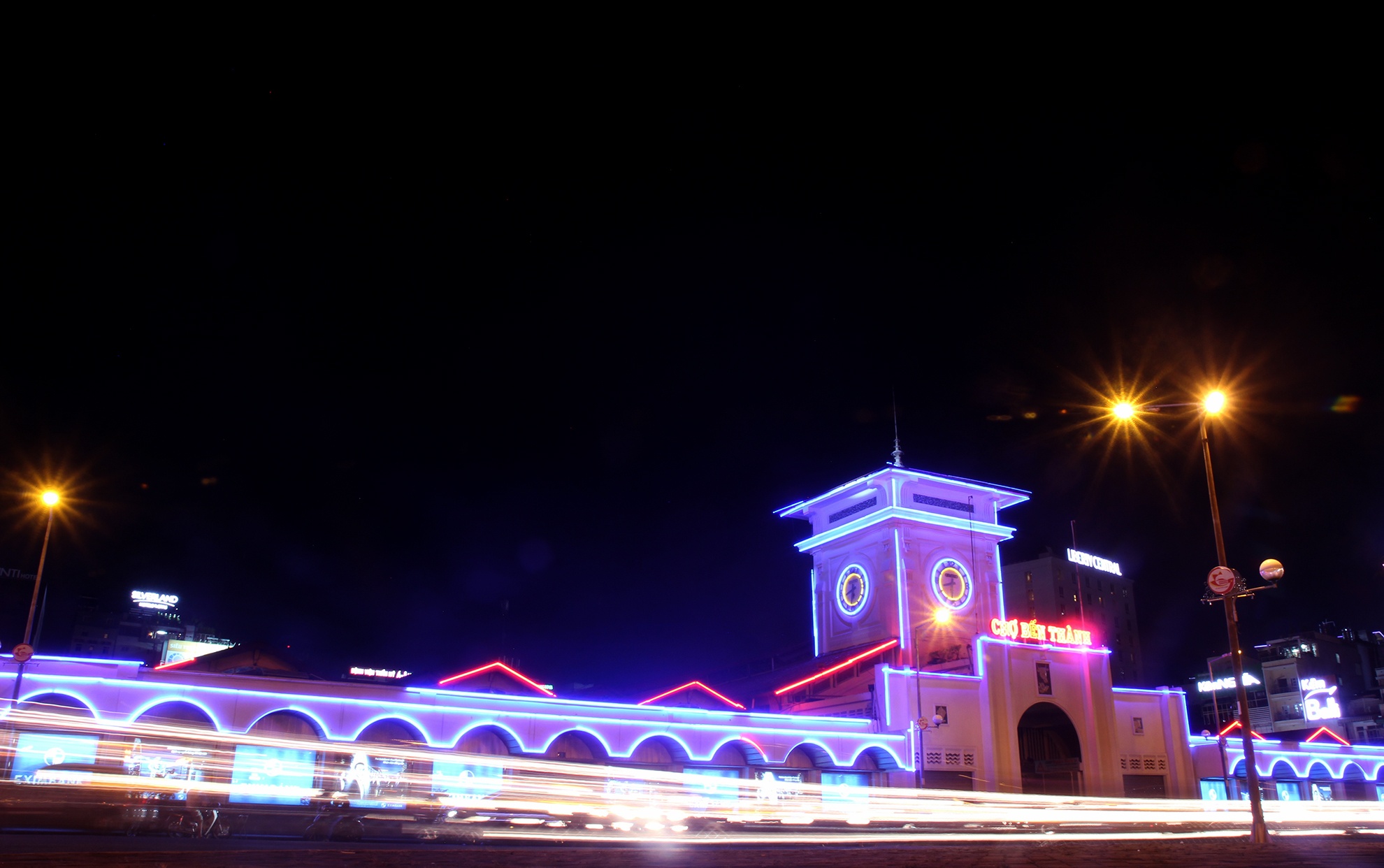 | Chợ Bến Thành cũng tỏa sáng huyền ảo giữa trung tâm thành phố.