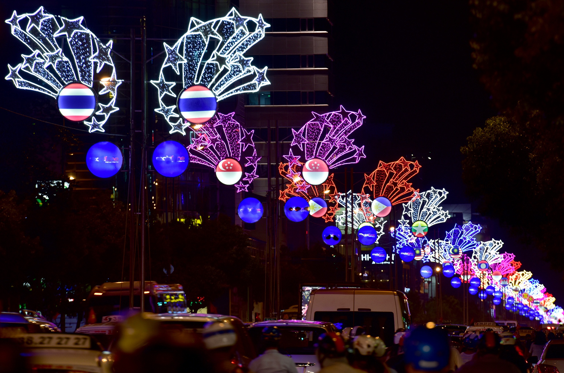 | Các tuyến đường nối tiếp Nguyễn Văn Trỗi - Nam Kỳ Khởi Nghĩa được thiết kế hình cánh bướm gắn cờ cộng đồng tổ chức ASEAN và quốc kỳ các nước thành viên. |