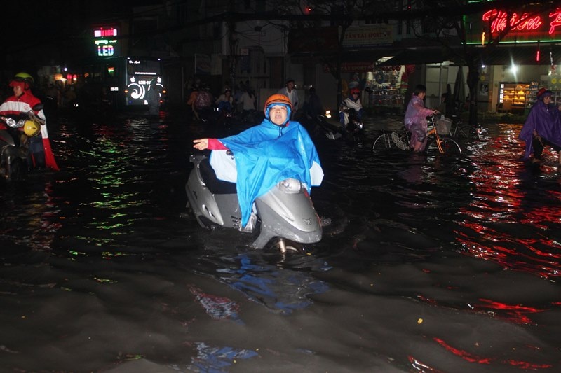 Tại tuyến đường Hòa Bình, theo ghi nhận của phóng viên mưa lớn đã khiến tuyến đường đoạn qua trước cổng Khu du lịch Đầm Sen ngập từ 0,5 đến 0,7 mét đã khiến hàng trăm xe chết máy. Nhiều khách đến vui chơi tại khu du lịch phải bì bõm lội nước ‘sông’ đen kịt trên đường Hòa Bình để tìm các trạm xe buýt đón xe về nhà. Nước ngập gần lụt bánh xe máy trên đường Hòa Bình.