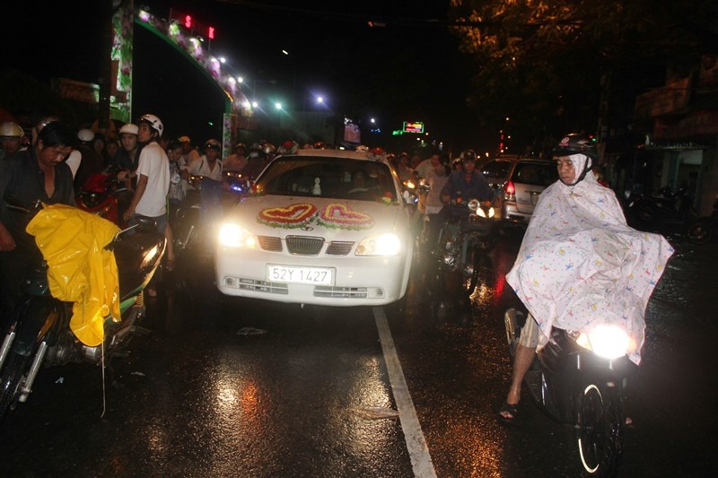 | Xe chở cô dâu và chú rể bị chết máy trên đường Hòa Bình buộc cô dâu và