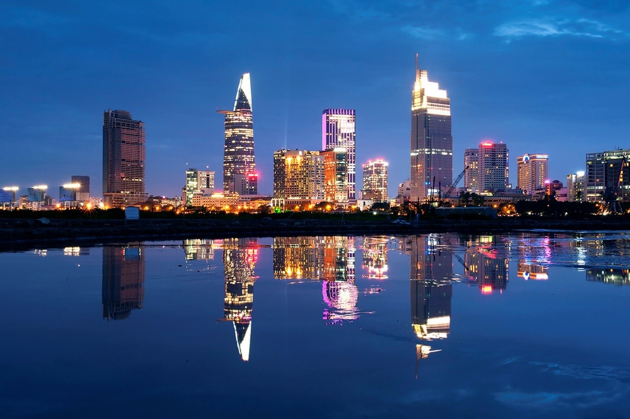 Trung tâm quận 1 lộng lẫy nhìn từ bán đảo Thủ Thiêm.