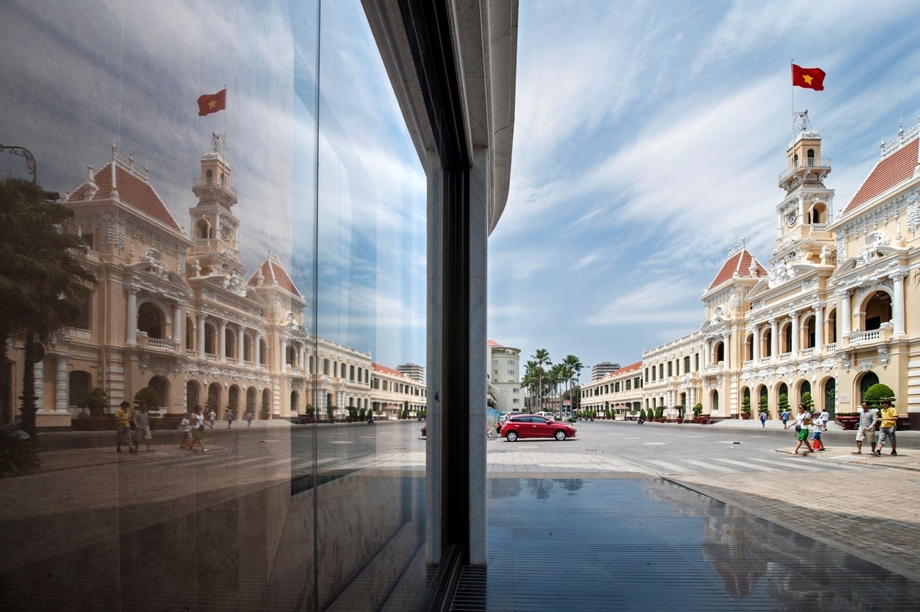 "Tôi chờ đợi đường đi bộ Nguyễn Huệ loáng nước sau cơn mưa để chụp bức ảnh này, nhằm gợi lại ký ức: Nơi đây, hơn 100 năm trước, từng là một con kênh…" nhiếp ảnh gia Hoàng Trung Thủy chia sẻ.
