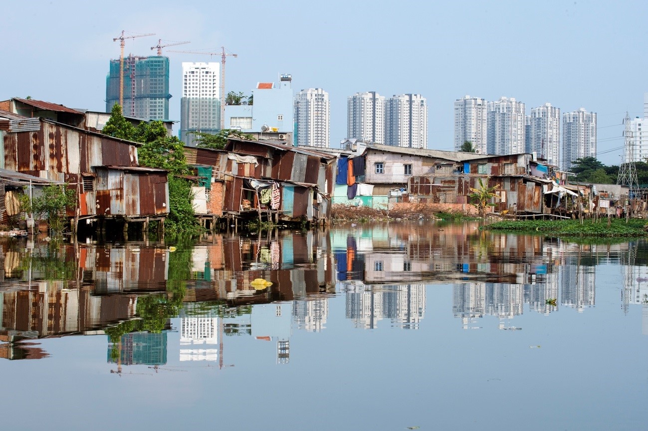 Sự tương phản mới – cũ, cao – thấp, tạo nên tính kịch tính mạnh mẽ, tiêu biểu cho quá trình phát triển và đổi thay rất nhanh của Sài Gòn. Chẳng bao lâu nữa, những căn nhà sàn ven sông sẽ đi vào ký ức.